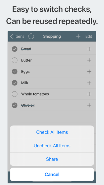 إحدى الميزات الرئيسية لـ قائمة التحقق هي قدرتها على تحسين الإنتاجية. يمكنك إدخال الأفكار وتصنيف العناصر بشكل مستمر ، حتى لقوائم التحقق المعقدة. يسمح التطبيق أيضًا بإعادة ترتيب العناصر وتحديد أولوياتها لتحسين سير العمل. إن تأشير العناصر المكتملة سيجعل التقدم أكثر وضوحًا ، وميزة التحقق الجماعي تجعل إعادة استخدام قوائم التحقق أمرًا سهلاً.